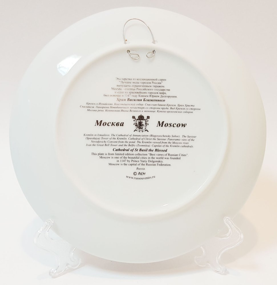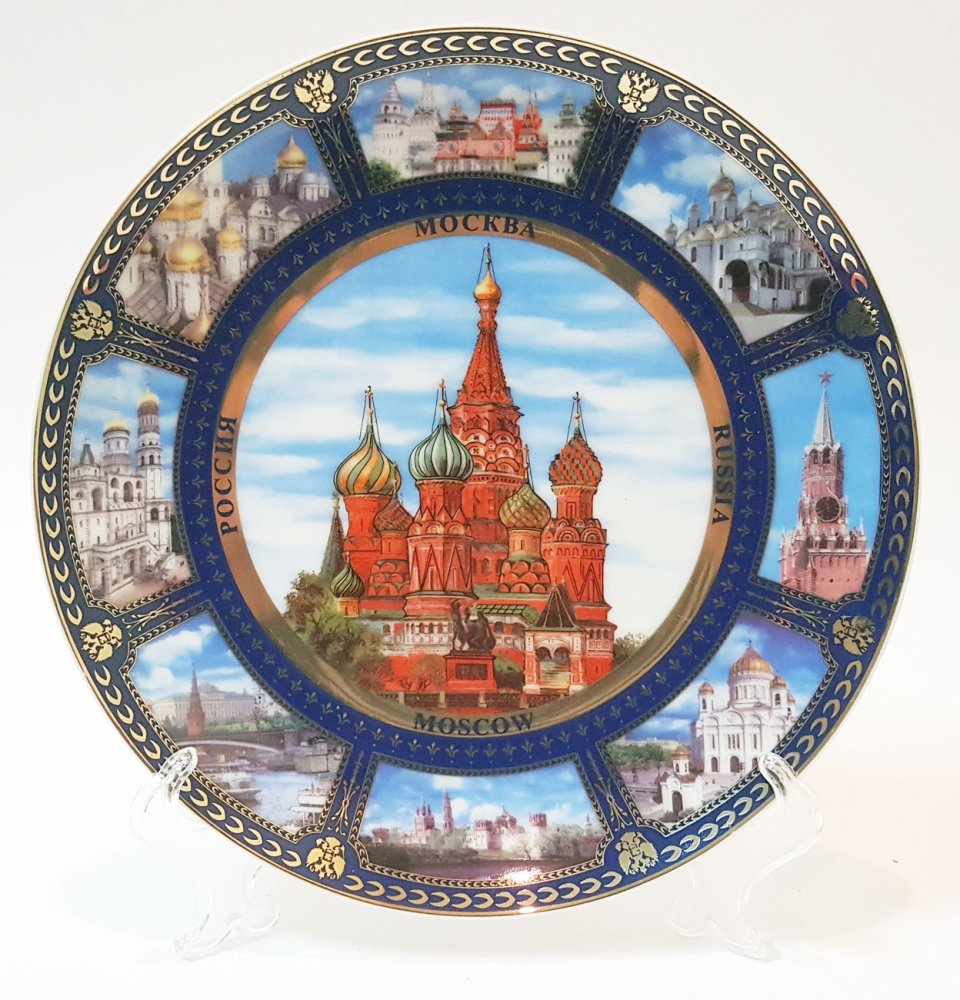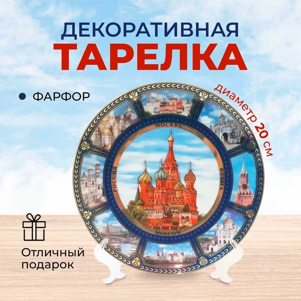 Декоративная фарфоровая тарелка, выполненная методом сублимации, на тарелке изображено "Москва, Храм Василия Блаженного", с достопримечательностями Кремля по кругу. На обратной стороне тарелки имеется специальный пластиковый крючок, позволяющий удобно и надежно закрепить ее на стене. Также к тарелке прилагается специальная полимерная подставка тренога, обеспечивающая ее установку на горизонтальной поверхности. Тарелка поставляется в белой индивидуальной коробке. Диаметр тарелки 20 см.Похожие товары:
