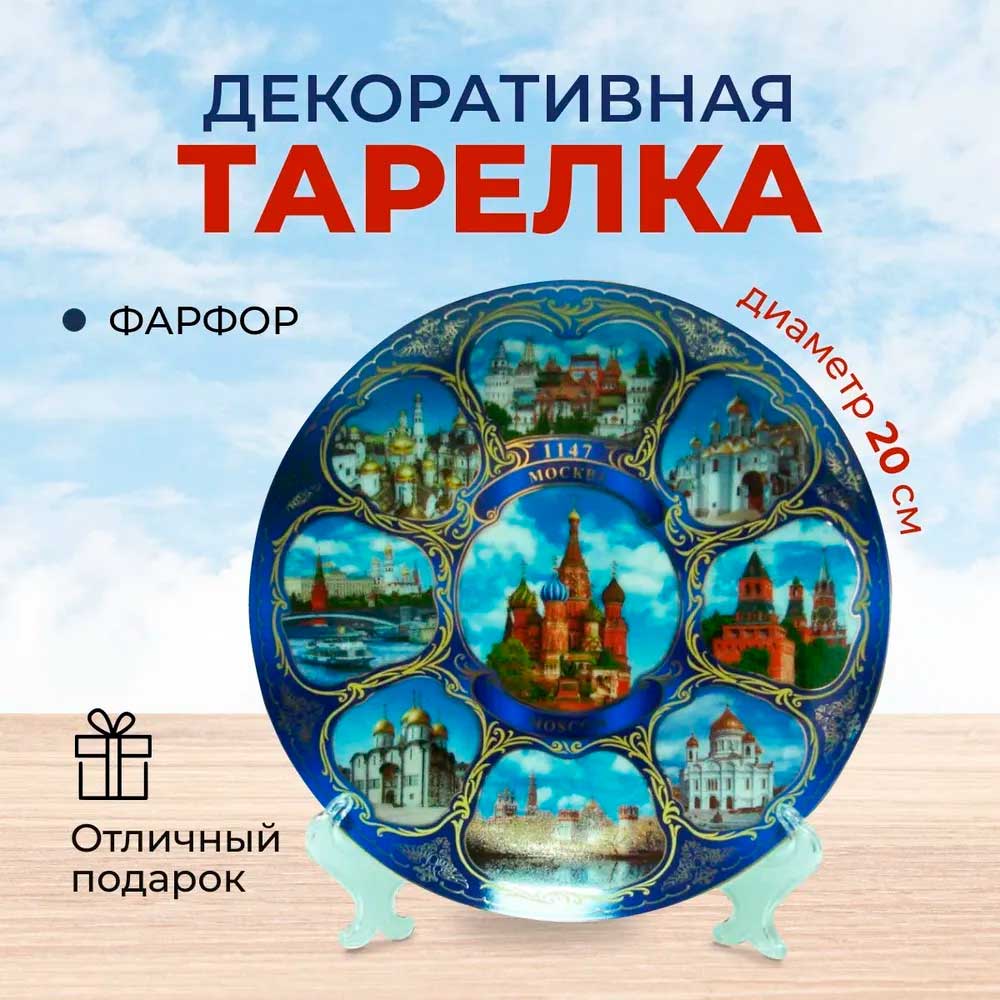 Декоративная фарфоровая тарелка, выполненная методом сублимации, на тарелке изображено "Коллаж №2 Москва", с достопримечательностями Кремля по кругу. На обратной стороне тарелки имеется специальный пластиковый крючок, позволяющий удобно и надежно закрепить ее на стене. Также к тарелке прилагается специальная полимерная подставка тренога, обеспечивающая ее установку на горизонтальной поверхности. Тарелка поставляется в белой индивидуальной коробке. Диаметр тарелки 20 см.Похожие товары: