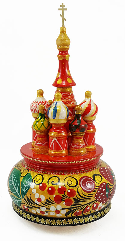 Музыкальный собор - макет Хохлома золотая, 21 см. вращающийся, Храм