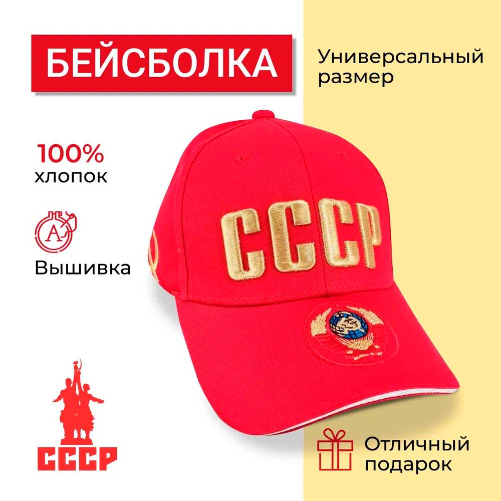 Головной убор Бейсболка ГЕРБ СССР, вышивка, красная
