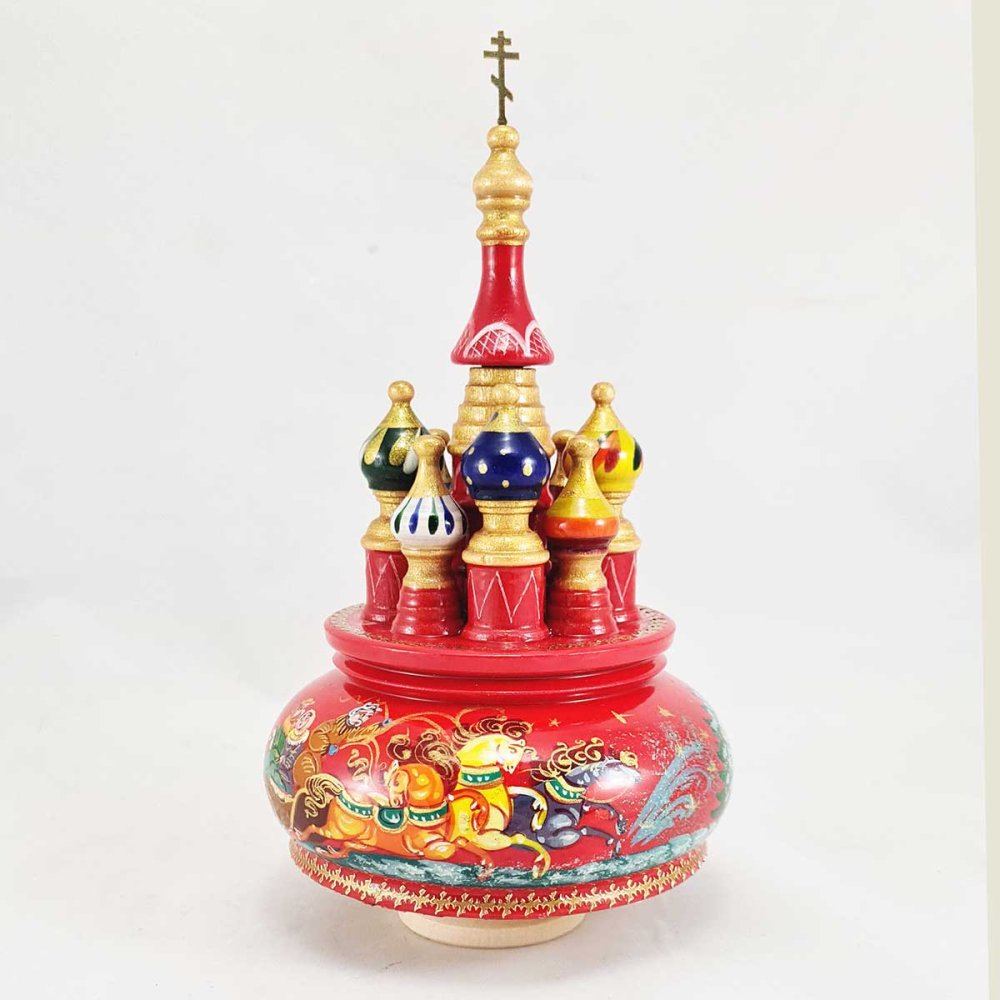Музыкальный собор - макет Тройка на красном фоне, 21 см., вращающийся, Храм