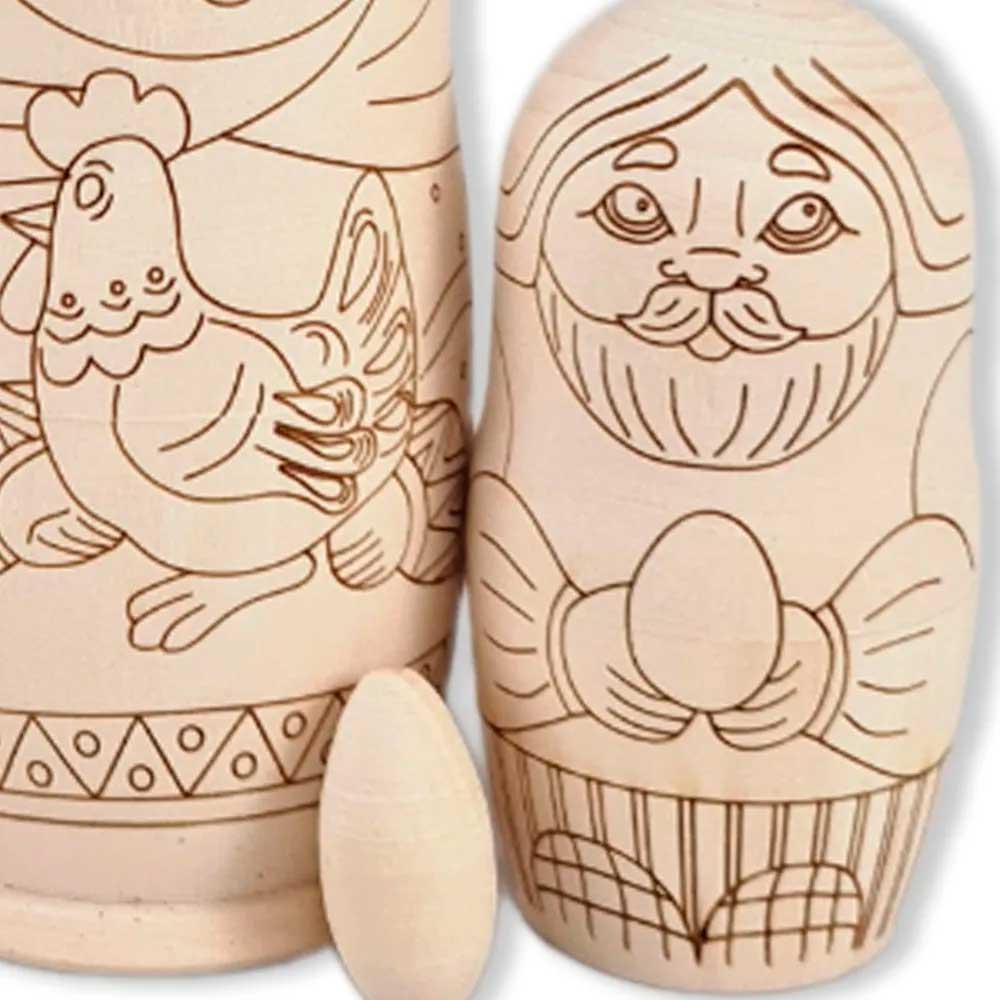 Матрешка Раскраска 5 мест сказка про курочку Рябу