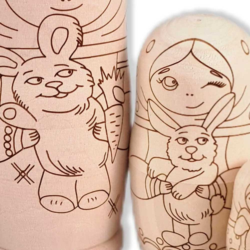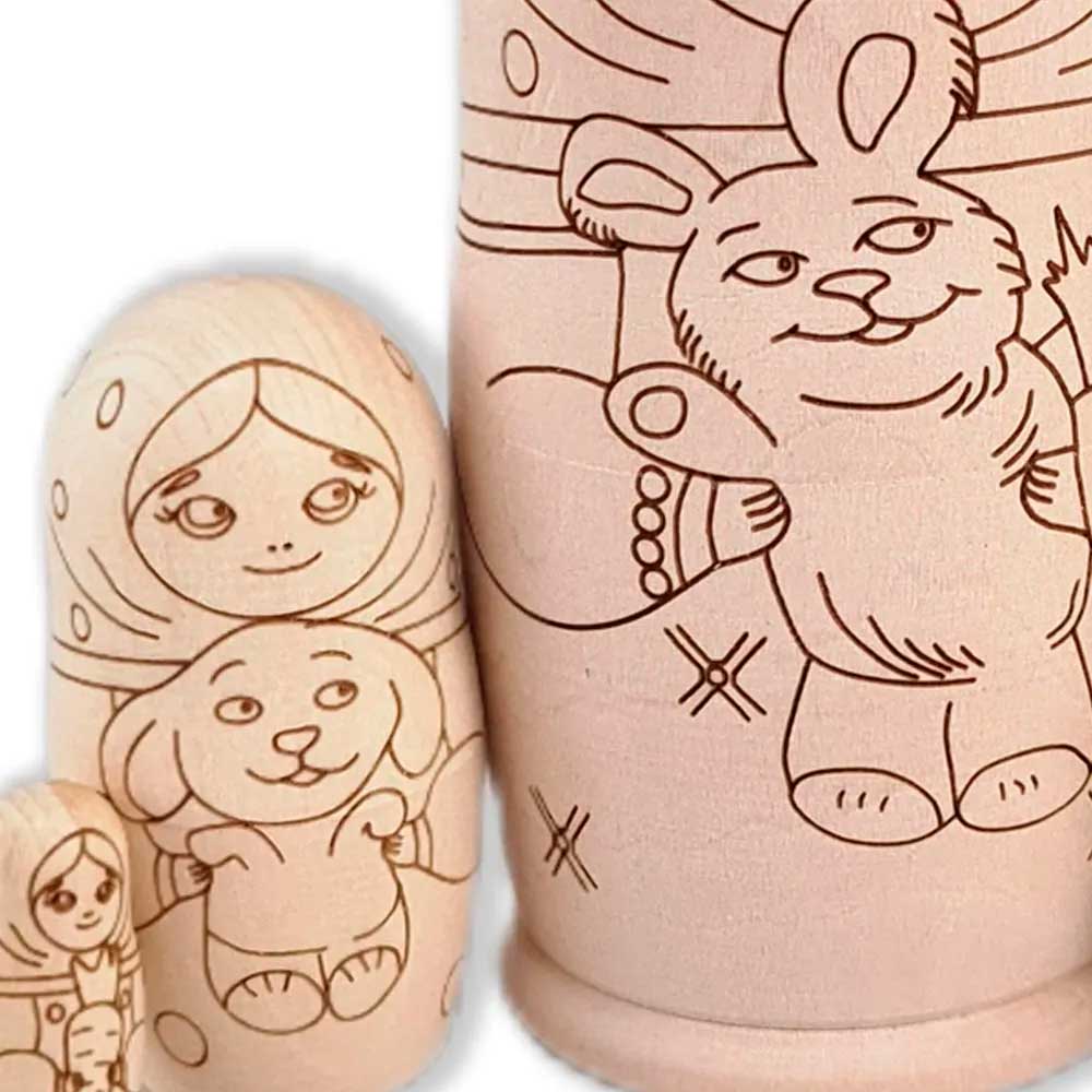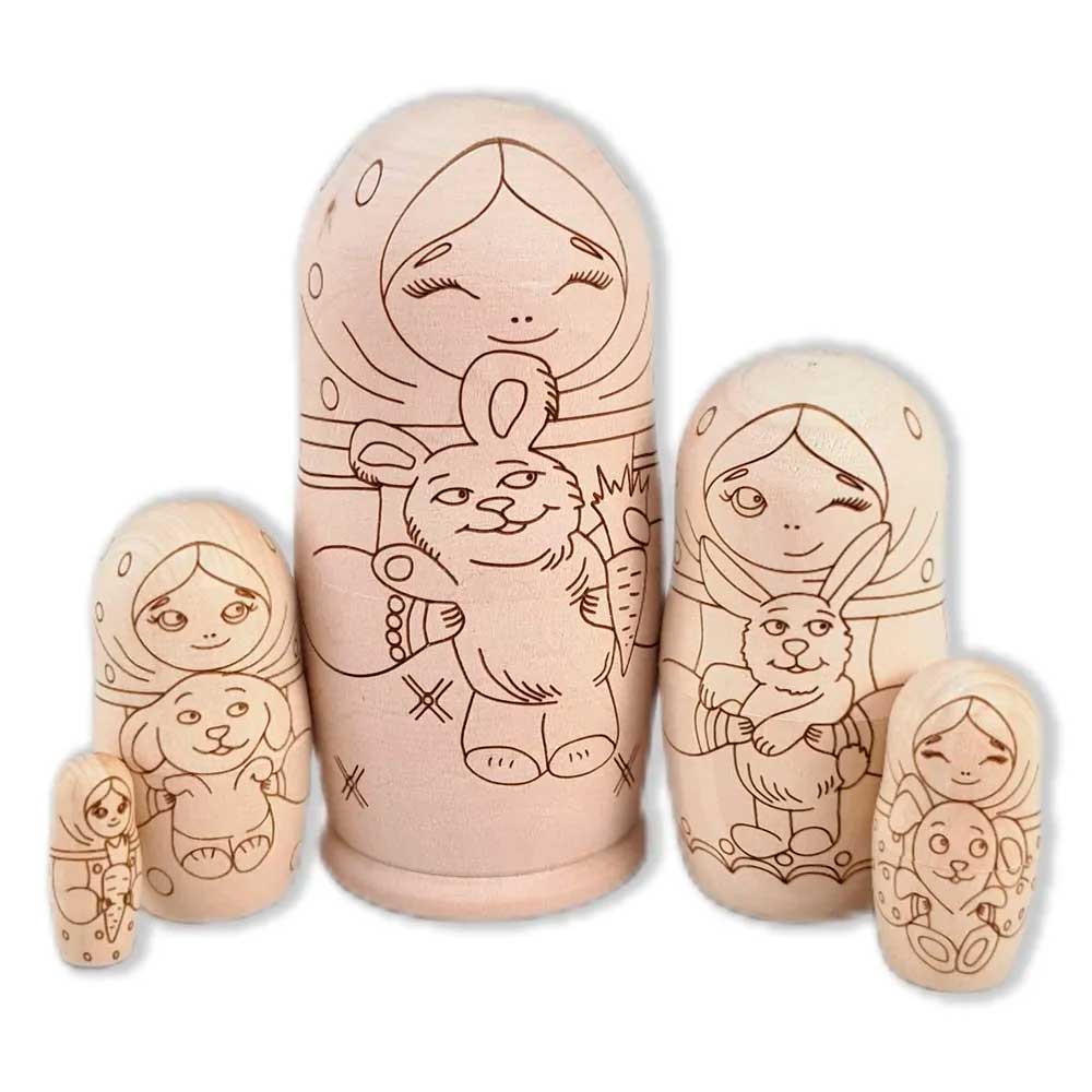 Матрешка Раскраска 5 мест Девочка с зайкой