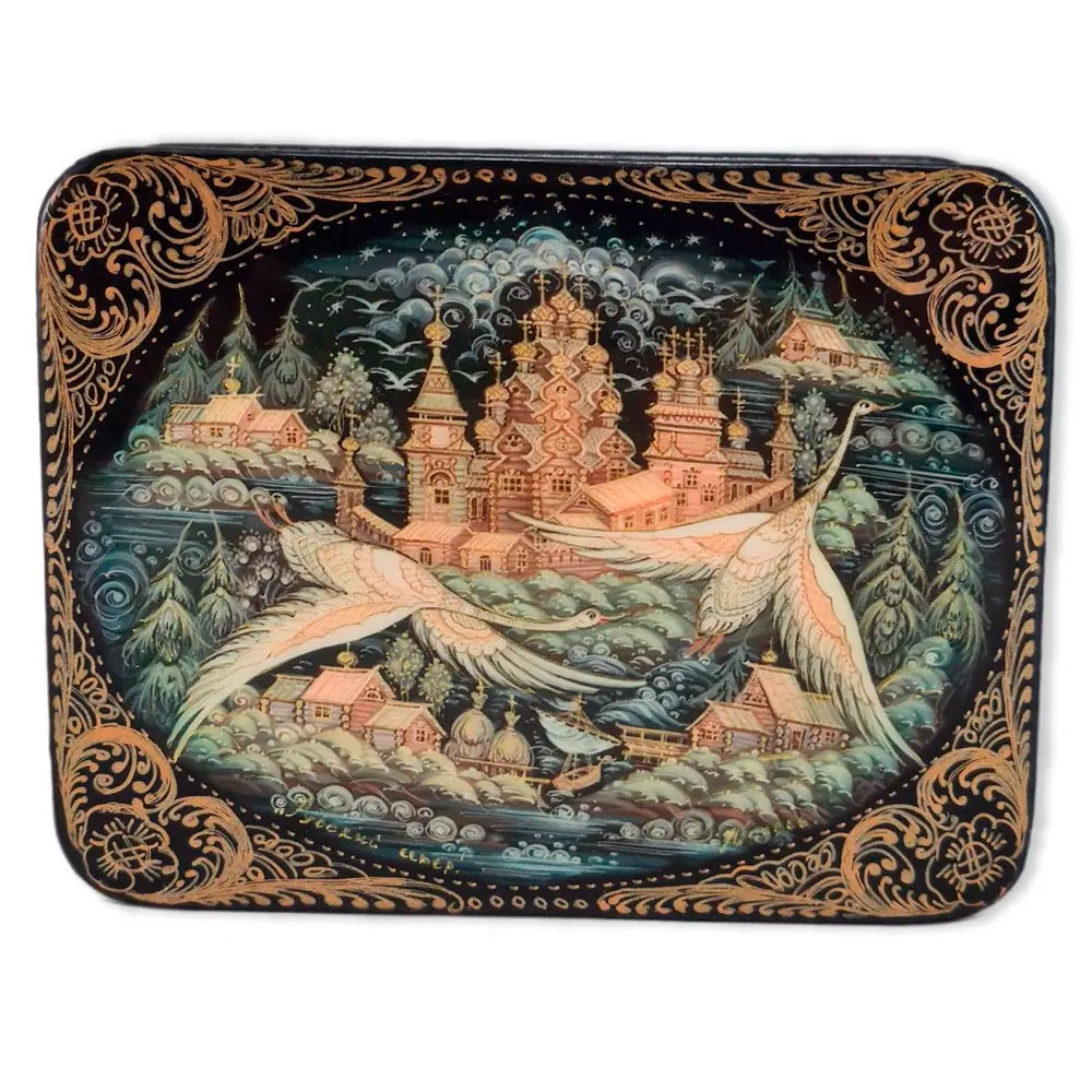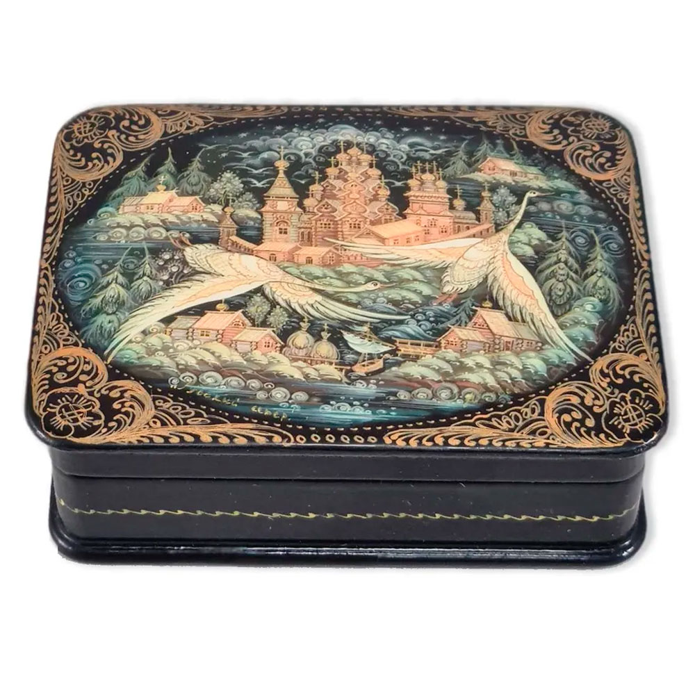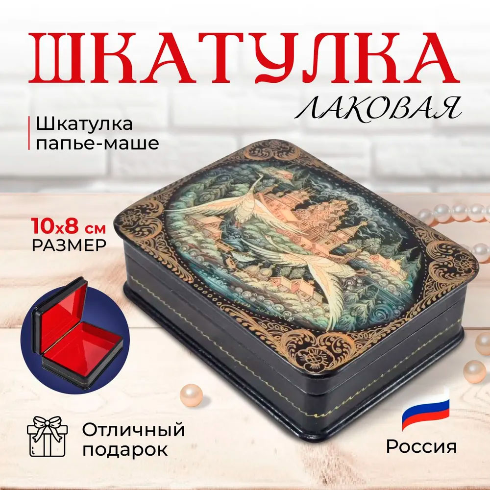 Шкатулка лаковая с элементами ручной росписи Русский север, орнамент, 10 на 8 см.