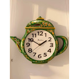 Хохлома сувенирная часы на кухню, Чайник, стиль - Ландыши на зеленом фоне.