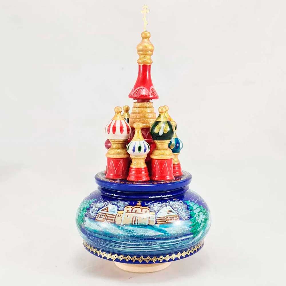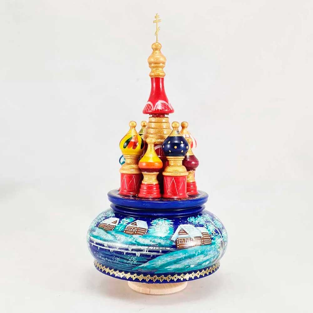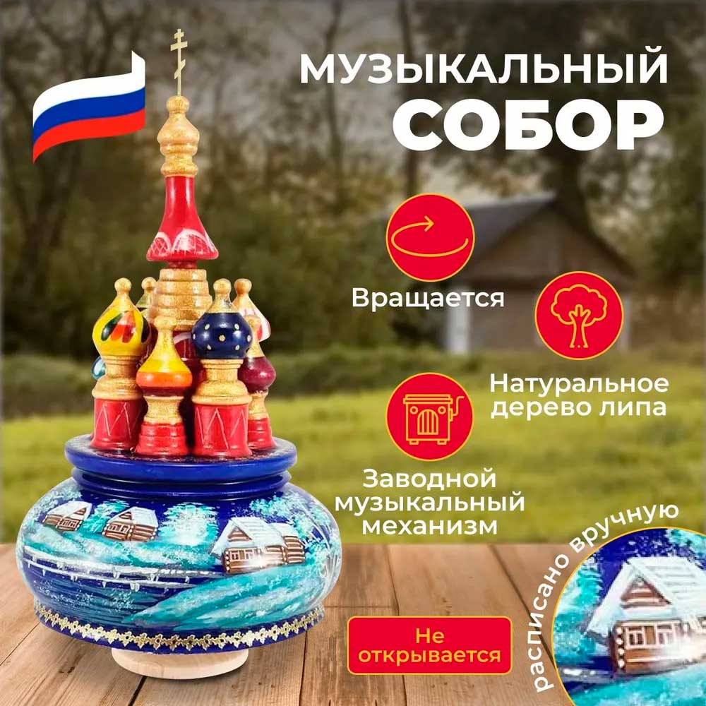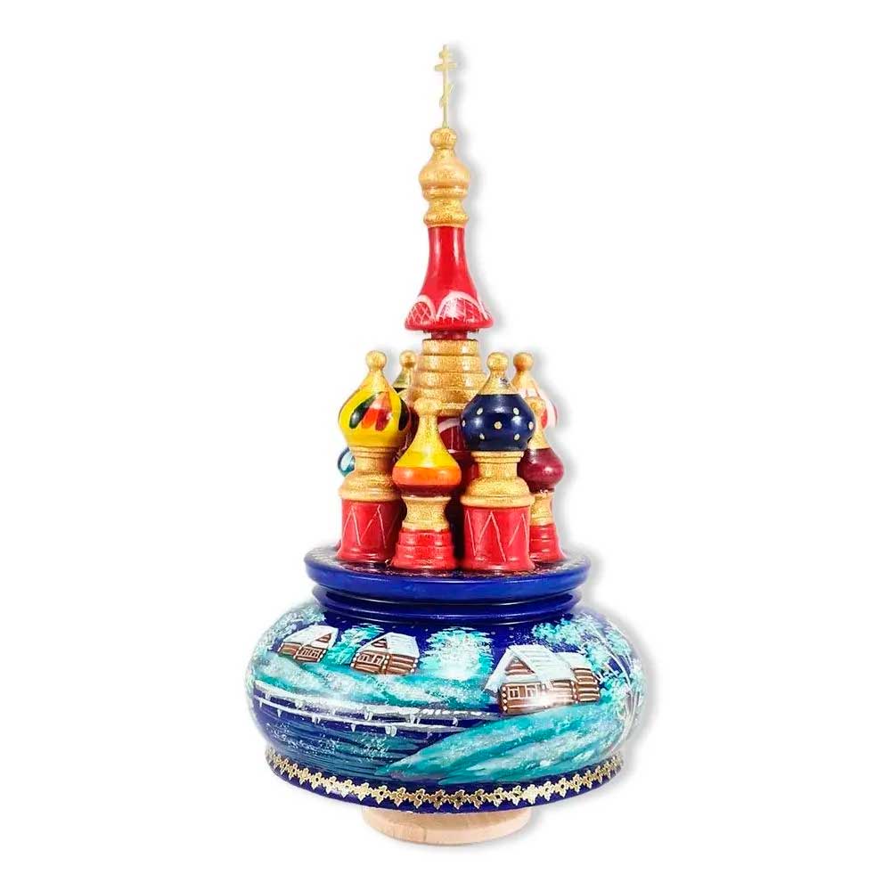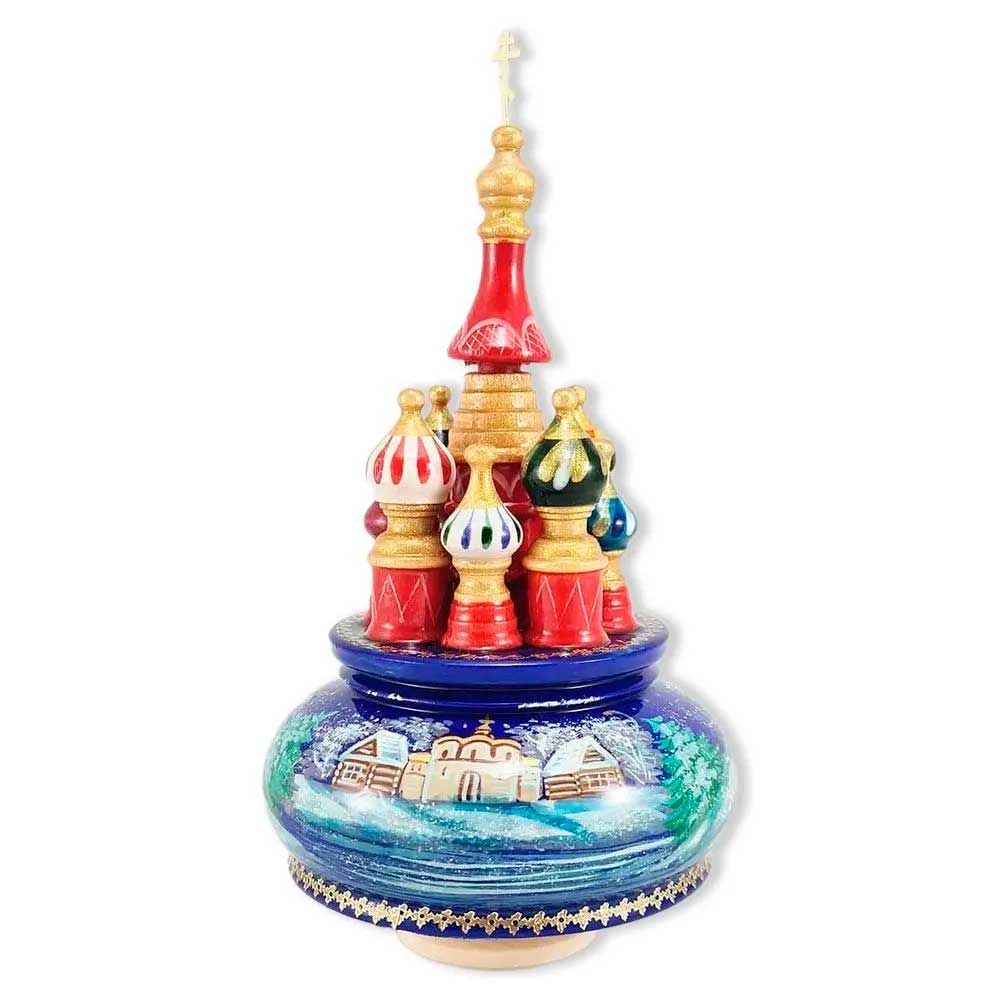 Музыкальный собор - макет Зимняя деревня на синем фоне, 21 см., вращающийся, Храм