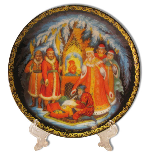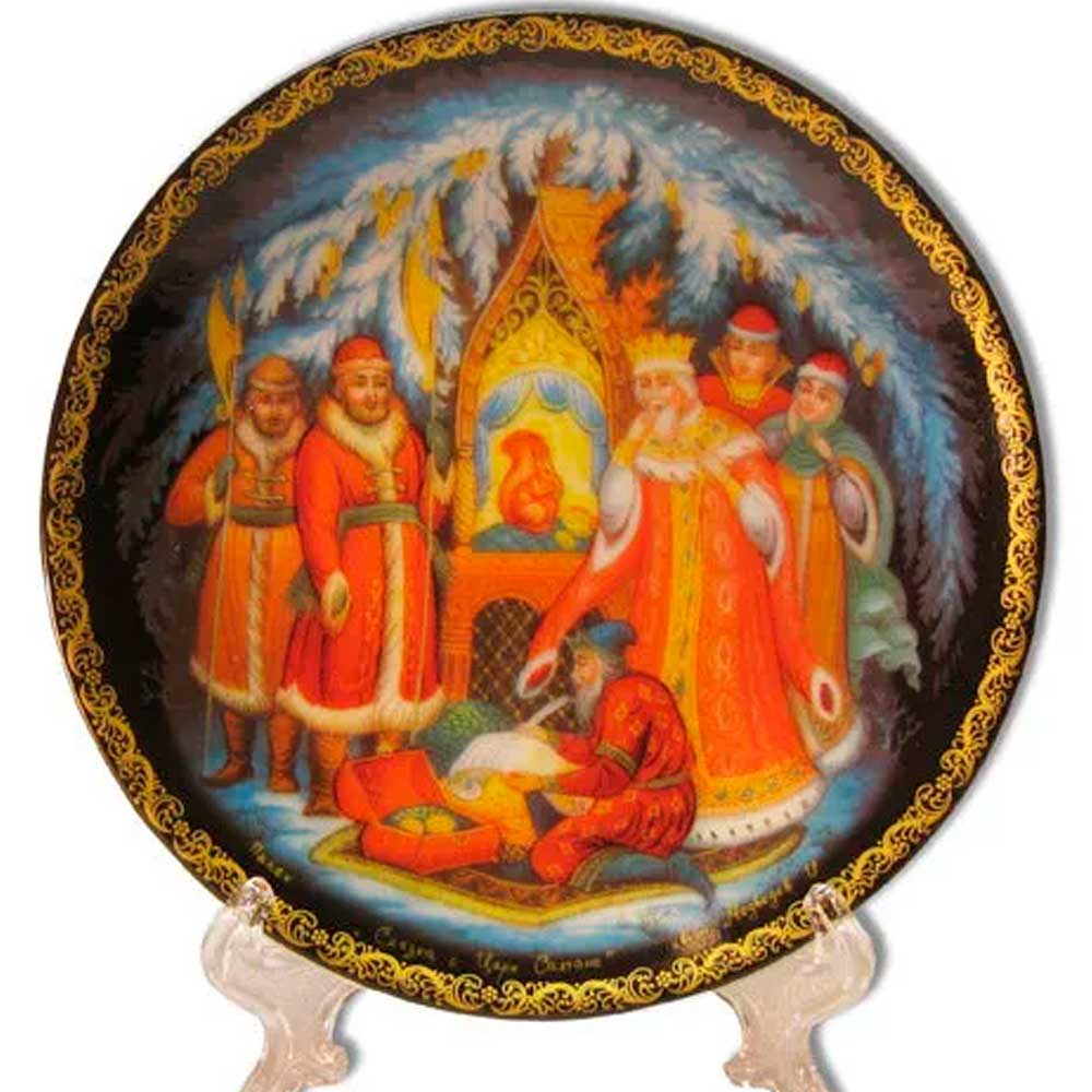 Тарелка декоративная фарфоровая по мотивам русских сказок. Палех "Сказка о Царе Салтане". Диаметр 20 см. Рисунок горячая деколь. Качественное и долговечное покрытие. Тарелка идет в комплекте с подставкой. Также на обратной стороне есть металлический подвес, с помощью которого тарелку можно повесть на стену. Красивая подарочная упаковка. Отличный подарок на любой праздник. Украшение вашего дома в стиле Русских Народных сказок. Декоративная тарелка погрузит вас в атмосферу сказки и волшебства.Похожие товары: