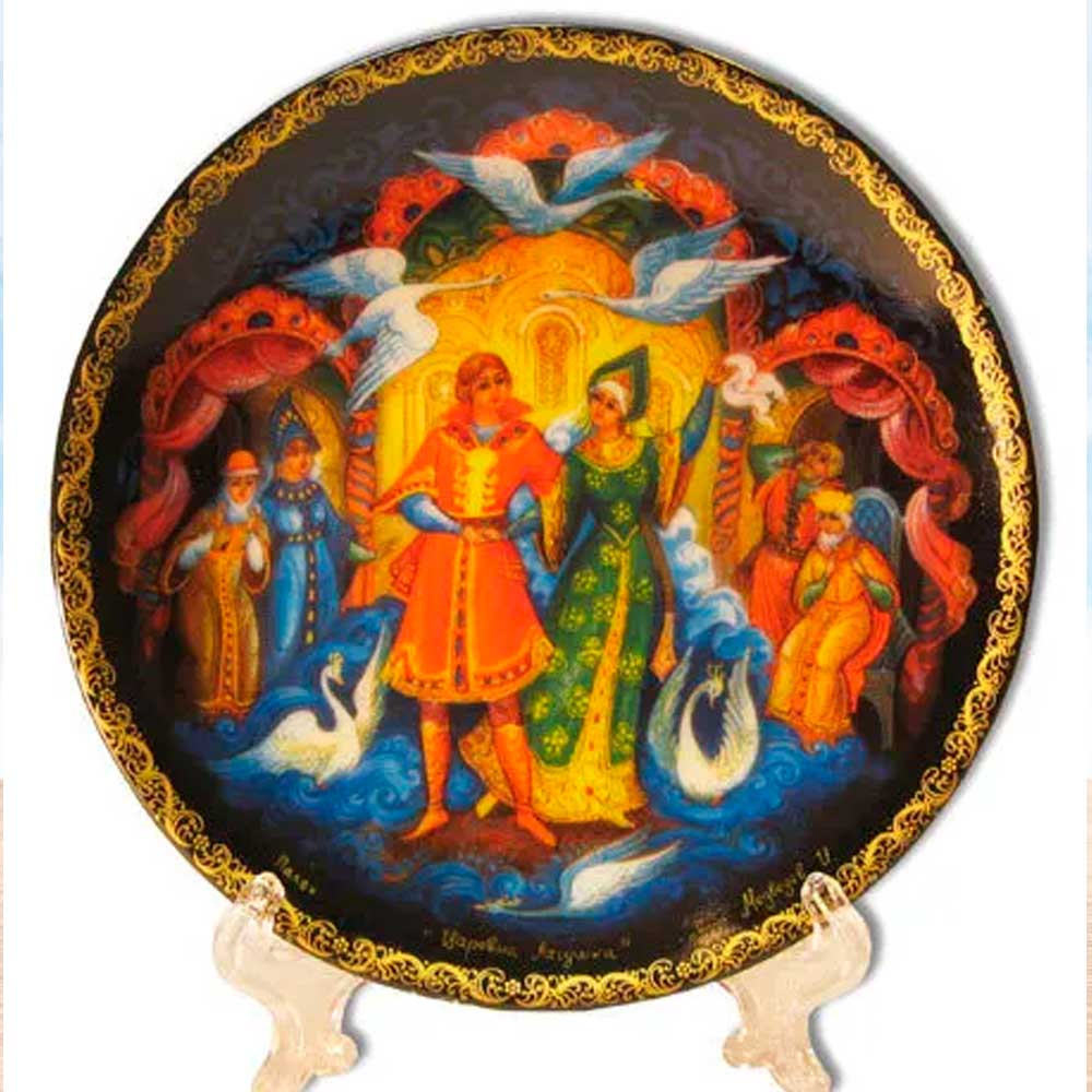 Тарелка декоративная фарфоровая по мотивам русских сказок. Палех "Царевна-лягушка". Диаметр 20 см. Рисунок горячая деколь. Качественное и долговечное покрытие. Тарелка идет в комплекте с подставкой. Также на обратной стороне есть металлический подвес, с помощью которого тарелку можно повесть на стену. Красивая подарочная упаковка. Отличный подарок на любой праздник. Украшение вашего дома в стиле Русских Народных сказок. Декоративная тарелка погрузит вас в атмосферу сказки и волшебства.Похожие товары:
