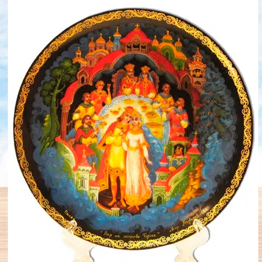 Тарелка 20-30 Палех "Пир на острове Буяне"