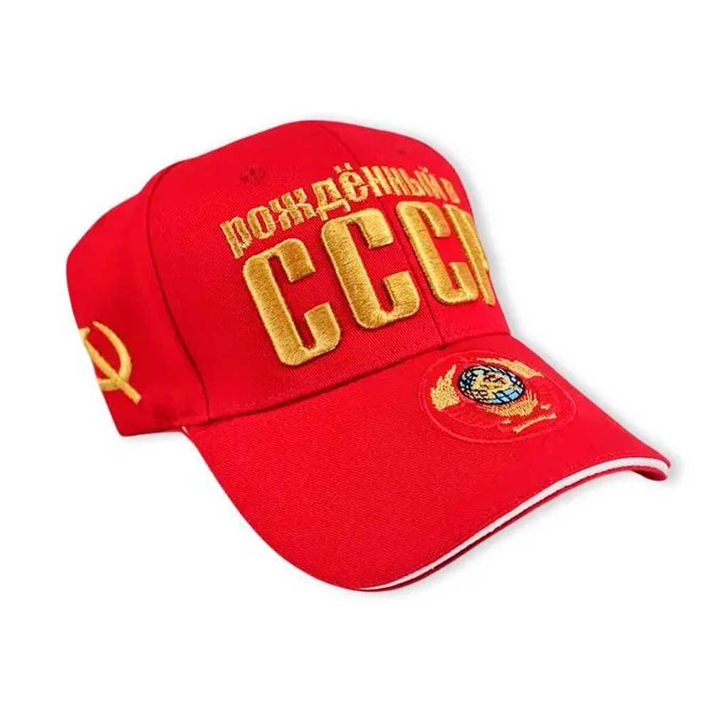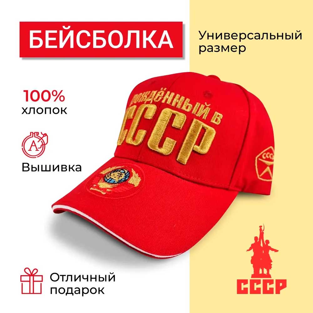 Головной убор Бейсболка Рожденный в СССР - Герб СССР, красная, вышивка